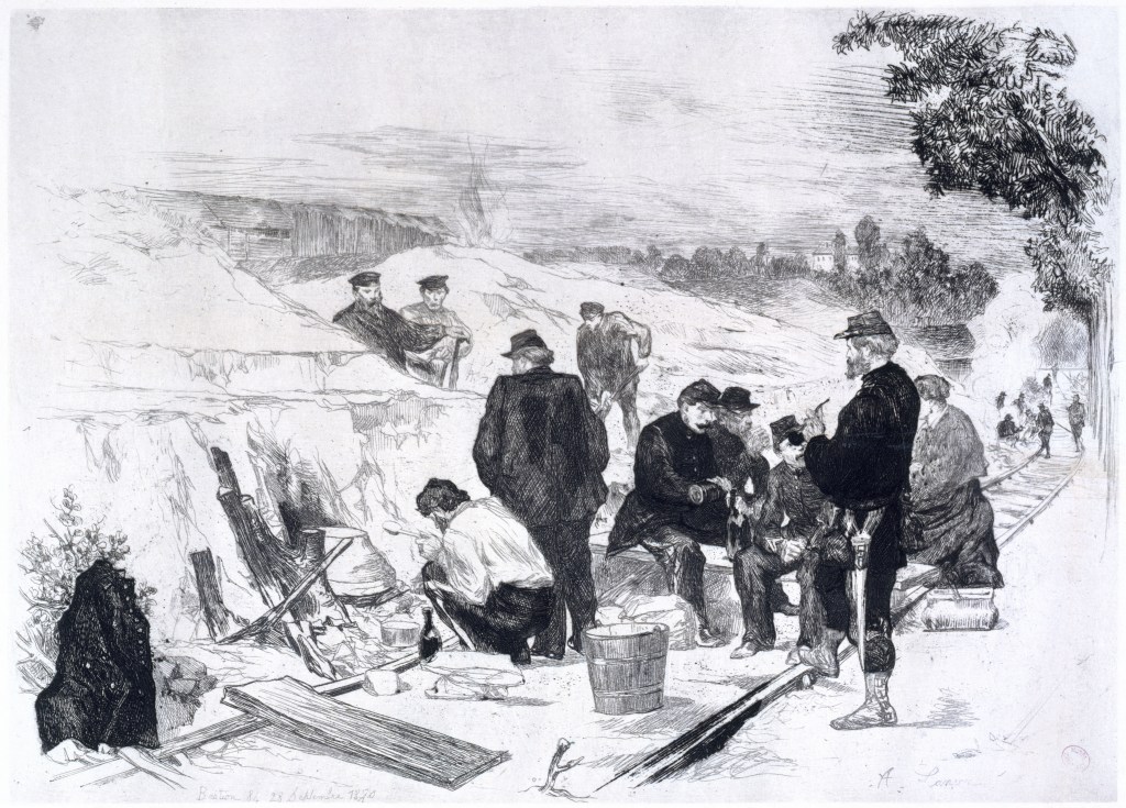 Il va tout de suite être plongé dans le feu de l’action, puisque qu’à partir du 9 août 1870, pendant le siège de Paris, il conduit des « travaux de défense des Portes d’Arcueil, de Sceaux et de Gentilly et des carrières en avant de l’enceinte, des travaux d’abris, travaux de pare-éclats dans une partie de l’enceinte du 8ème secteur ».