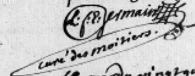 Hélas, cette donnée n’est pas probante, car le père ne signe pas sur l’acte d’inhumation, ne permettant pas la comparaison. Mais il n’y est pas dit qu’il ne sait pas signer et les actes de décès d’enfants qui suivent ne sont pas non plus signés par le père. Sur l’acte, le seul témoin qui signe avec le curé est le custos, Jean François RAISIN.