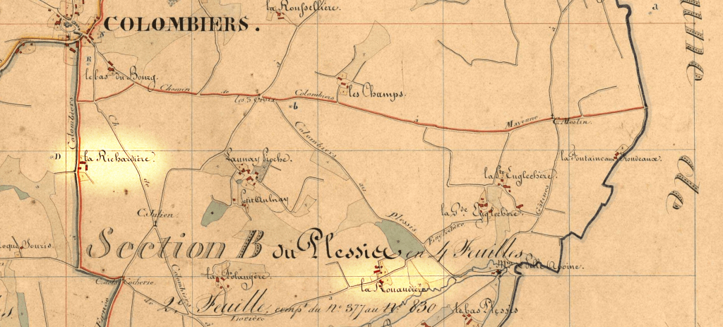 Je ne suis encore jamais allée dans ton village. J’ai vu, sur le recensement de 1876 qu’il y a trois foyers au hameau de la Ruaudière qui se trouve au quartier du Plessis. Ton père est alors cultivateur et ta mère cultivatrice. Deux domestiques vivent avec vous. J’ai crû comprendre que tes parents étaient alors propriétaires.