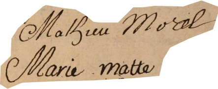 Quelques pas plus loin, faisons connaissance avec l’un de leur fils, mon ancêtre, Mathieu Simon MOREL, marchand, bourgeois de Paris, qui contracte mariage, le 6 juin 1694, avec Marie LEMATTE, fille unique de Antoine LEMATTE, marchand de bois et de Marguerite BOURGEOIS. Et cette fois encore, les deux époux et les parents de l’épouse habitent à la même adresse, Cloître Saint-Nicolas-du-Louvre. Celle du père de l’époux n’est pas précisée et il est dit, comme son fils, bourgeois de Paris.