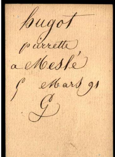 Pierrette HUGOT est l’ancêtre parisienne qui pour moi reste une énigme non résolue. Je n’ai connaissance de son mariage, le 5 mars 1791, que par cette fiche de la collection Andriveau. Je n’ai pas son acte de décès, juste une mention, sur la Table des décès et successions qui indique qu’elle avait 67 ans. Sur le registre journalier d’inhumation du Cimetière Montparnasse, elle est notée âgée de 68 ans. Elle serait donc née vers 1767-1768 et aurait donc eu environ 24 ans à son mariage, son mari en avait 40. Je n’ai trouvé aucun acte qu’elle aurait passé avec son mari. Je ne sais donc pas si elle savait écrire.