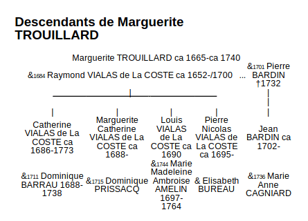 Marguerite se remarie le 23 novembre 1701 avec Pierre BARDIN, maître tailleur, avec qui elle aura un fils, Jean en 1702. En 1711, elle mariera votre fille aînée, Catherine, mon ancêtre, avec Dominique BARRAU, également maître tailleur, fils de maître tailleur et qui a un parcours semblable au tien, car il est arrivé de Toulouse, peu avant son mariage auquel n’assistait, comme pour toi, personne de sa famille. Ta femme et tes enfants habitent alors rue de l’Arbre-Sec. En 1715, ta fille cadette, Marguerite, épousera Dominique PRISSACQ, barbier, perruquier, étuviste. Ton épouse survivra aussi à son second mari qui décède le 26 avril 1732. En 1736, c’est leur fils, Jean BARDIN, qui prendra pour femme, Marie Anne CAGNIARD, fille de tapissier. Vos deux fils, Louis et Pierre Nicolas, deviendront comme toi, maîtres tailleurs. J’imagine que cette nouvelle doit te réjouir même si tu sais que ce n’est pas toujours facile de se faire payer son travail.