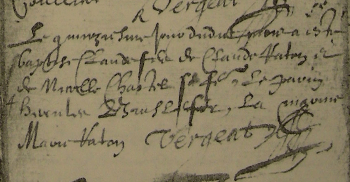 Je connais bien peu de choses sur ce que fut leur vie mais grâce au mariage de leur fils, en 1682, j’apprends que Claude qui est témoin sait lire et écrire car sa signature est affirmée.