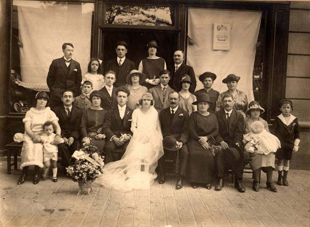 J’espérais le trouver sur la photo de mariage de Eugène HUSSON et Germaine RABIER, prise à Ivry-sur-Seine, le 28 mai 1925. Germaine RABIER est sa nièce, fille de Marie Louise QUINTON et de Armand RABIER et j’apprendrai plus tard qu’il était son parrain. Mais je n’ai pas identifié quelqu’un qui ressemble à sa photo de soldat. Il a sûrement été invité, comme mon père, présent derrière le marié. Alors est-il malade, cette année-là, ou ne se sent-il pas à l’aise pour participer à la noce ? Je me suis posé la même question pour ma grand-mère qui n’est pas non plus sur la photo, alors qu’elle est la marraine de Germaine, elle-même, marraine de mon père et dont elle semble proche.
