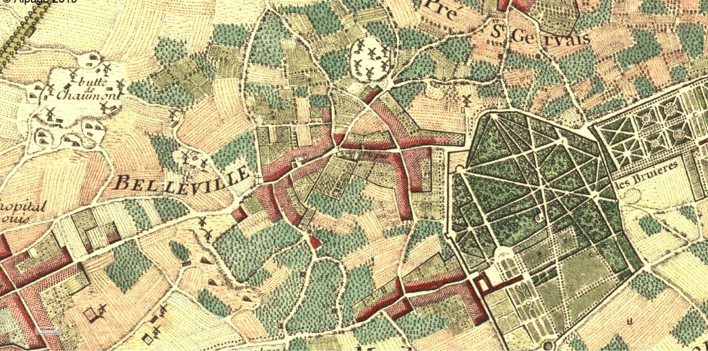 En 1790, deux siècles après l’époque où vécurent mes CHAUDRON, Belleville compte environ 1500 habitants, répartis entre le village de Belleville, le hameau de Ménilmontant et celui de La Courtille. La vigne occupe alors plus de la moitié des terres. Les vignobles parisiens