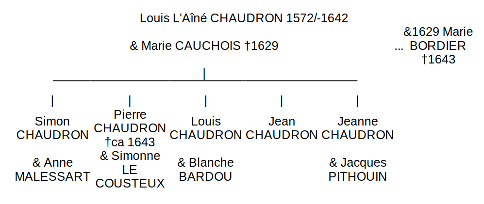 Il serait trop long de poursuivre avec mes deux derniers porteurs du patronyme CHAUDRON, Louis qui est dit marchand et laboureur, époux de Blanche BARDOU et père de Catherine, mariée avec Denis GOUSSE, vigneron à Belleville.