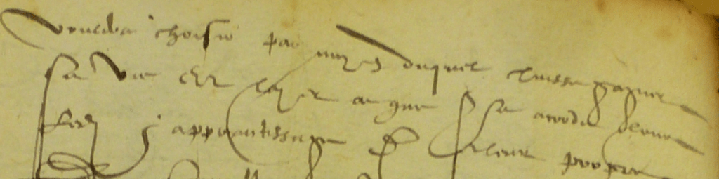 « et par droict de … laisse a Messire Jehan CORTET chirurgien son fils la moityé d’une vigne a … … … le terroir dud(ict) Manaosque » . Il y a ensuite des précisions, situant cette vigne, et il est question d’une somme que Jehan semble devoir verser à plusieurs personnes mais je n’ai pas compris de quoi il s’agit. Et voilà qu’il me faudrait ajouter Durand à la liste de mes vignerons !