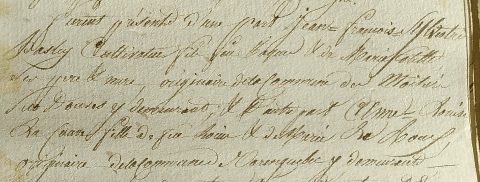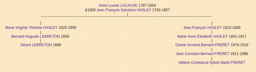 Jean François Sylvestre HASLEY et Anne Louise LACAUVE, sosas 36 et 37