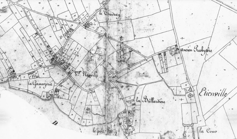 Je n’ai malheureusement pas trouvé, à ce jour, d’actes notariés les concernant. J’ai juste un acte passé le 28 décembre 1818, par lequel leur fille Anne Marguerite, autorisée par son époux, Jean Pierre FRERET dit Clainville, vend « une pièce de terre en labour sur laquelle quelques pommiers, nommée La Bougonnette, du contien d’environ quarante ares (deux vergers ancienne mesure) située en la commune d’Etienville, triage de Neuville« qui lui appartenait de la succession de son père. Charles avait donc, sur cette commune qui jouxte Picauville, une partie de ses terres en labour.