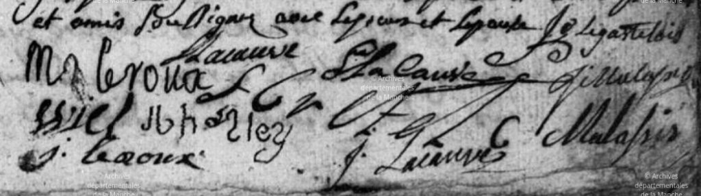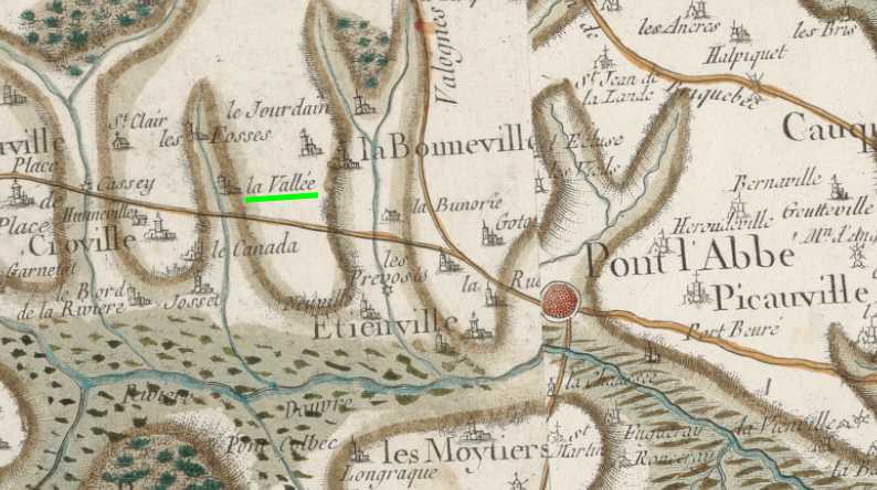 Je ne pense pas que Louis et Marie Anne aient cultivé cette pièce de terre, Varenguebec étant situé en dessous des Moitiers et surtout la rivière Douve et les marais séparent ces deux villages de La Bonneville. Ces propriétés appartenant à Louis et dont ses filles ont hérité, devaient être dans la famille LACAUVE depuis plusieurs générations, au vu des propriétaires qui les entourent. C’est un patronyme peu porté. La Bonneville est un des villages, souche de la famille, l’autre étant Picauville, au moins en remontant jusqu’à ce que les actes me permettent de savoir.