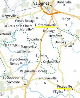 C’est à Flottemanville-Bocage, à 13 km de Picauville, que j’ai vu le jour, le 21 août 1695, fille de François COUPPEY et d’Ysabeau HEREQUIN. J’ai été portée sur les fonds baptismaux par Louis CADOT de Sebeville, Seigneur d’Audouville et Noble Dame Félicie Marguerite CADOT de Sebeville, frère et sœur. Je suis l’aînée de trois filles. Je n’avais pas encore deux ans quand j’ai eu le chagrin de perdre ma maman, un mois après la naissance de ma petite sœur.